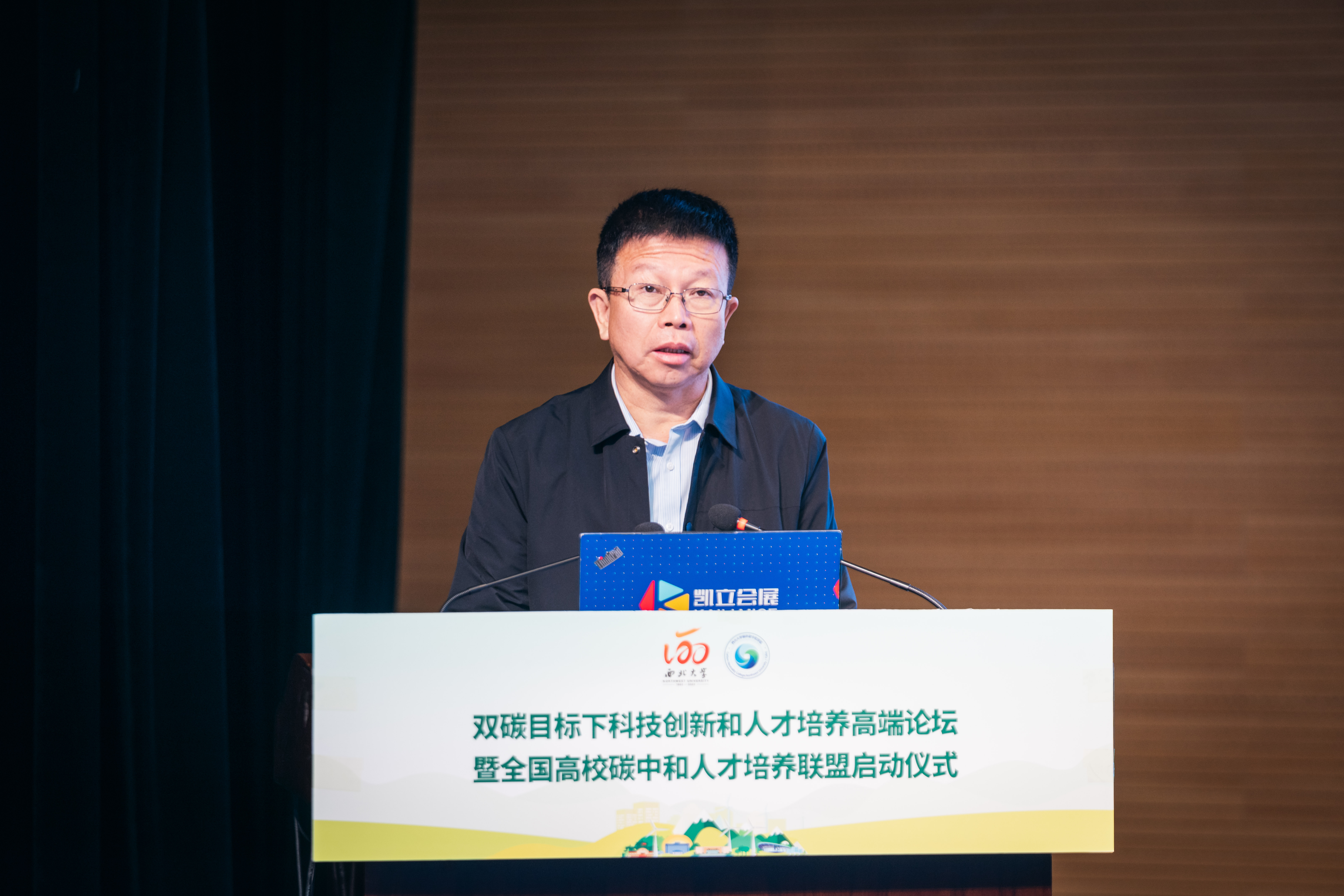王亚杰在致辞中介绍了西北大学办学成就以及在CCUS领域的研究进展与探索实践。他强调,在众多高校“孔雀东南飞”,前往东部及沿海地区建立分校的同时,西北大学坚持北上,在榆林建立碳中和学院,充分体现了一所地方高校的使命担当。他指出,建立全国高校碳中和人才培养联盟将为加快“双碳”领域高层次人才培养提供平台支撑,西北大学将抢抓机遇,将实现“双碳”目标融入学校事业发展全局,以校地、校企、校校合作为抓手,积极探索交叉育人新模式,着力破解卡脖子关键技术难题,为实现碳达峰碳中和愿景作出西大贡献,为推动地区绿色低碳发展提供有效方案。