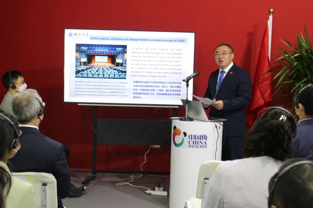 在联合国气候变化大会期间,西北大学还推介展示了学校在榆林实施的CCUS工程设施集群项目进展,与来自澳大利亚全球碳捕集与封存研究院等国际研究机构的同行交流了碳捕集与封存项目最新研究进展与难点问题,积极寻求国际组织、国际专家参与合作。
