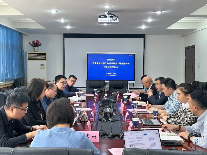 马春锋介绍了中材西安公司矿山工程建设、生态治理、建材生产及运营、工程技术运维服务等基本情况,以及中材西安公司在人才队伍建设、研究项目落地、检测模型建立等方面的需求,希望能在矿山治理、生态修复及水泥行业碳资产数字化管理平台建设等方面尽快实现实质性合作。