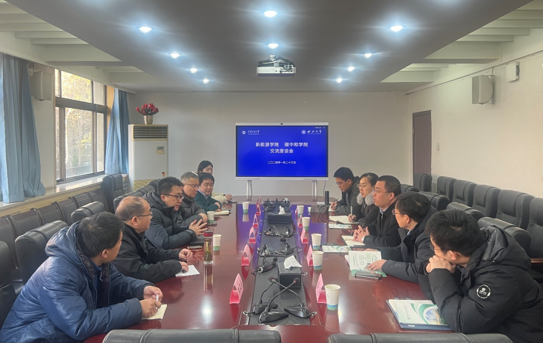 2024年1月23日下午,西安石油大学新能源学院院长黄海一行来院座谈合作事项。新能源学院副院长王治国、新能源材料与器件系主任肖美霞、新能源科学与工程系副主任王洋、能源与动力工程系副教授苏晓辉,碳中和学院首席科学家马劲风、必赢贵宾会3003官网教师代表参加座谈,碳中和学院负责人主持座谈。双方围绕交叉学科建设、平台共建、项目合作等事项进行了座谈研讨。