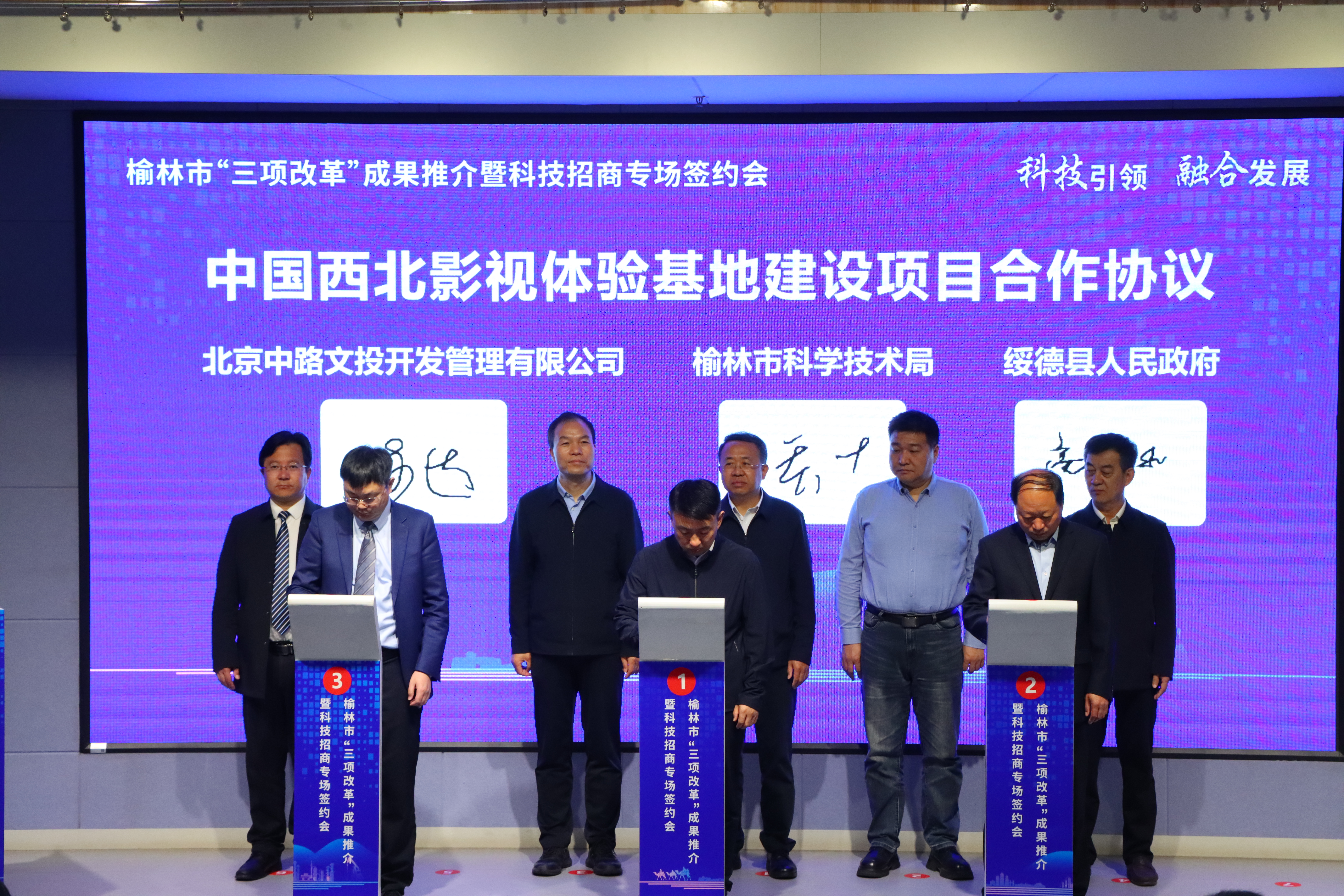 榆林市委常委、副市长赵勇与我校党委副书记吕建荣出席并见证签约,陕西省科技厅政策法规处负责人,榆林市政府办、科技局、外事外经局、各区县政府部门负责人,浙江大学、西安科技大学、榆林学院科研处负责人,我校科技处、碳中和学院负责人,签约参展企业负责人,我校及省内外相关高校项目路演负责人共计150余人参加会议,榆林市科技局负责人主持会议。