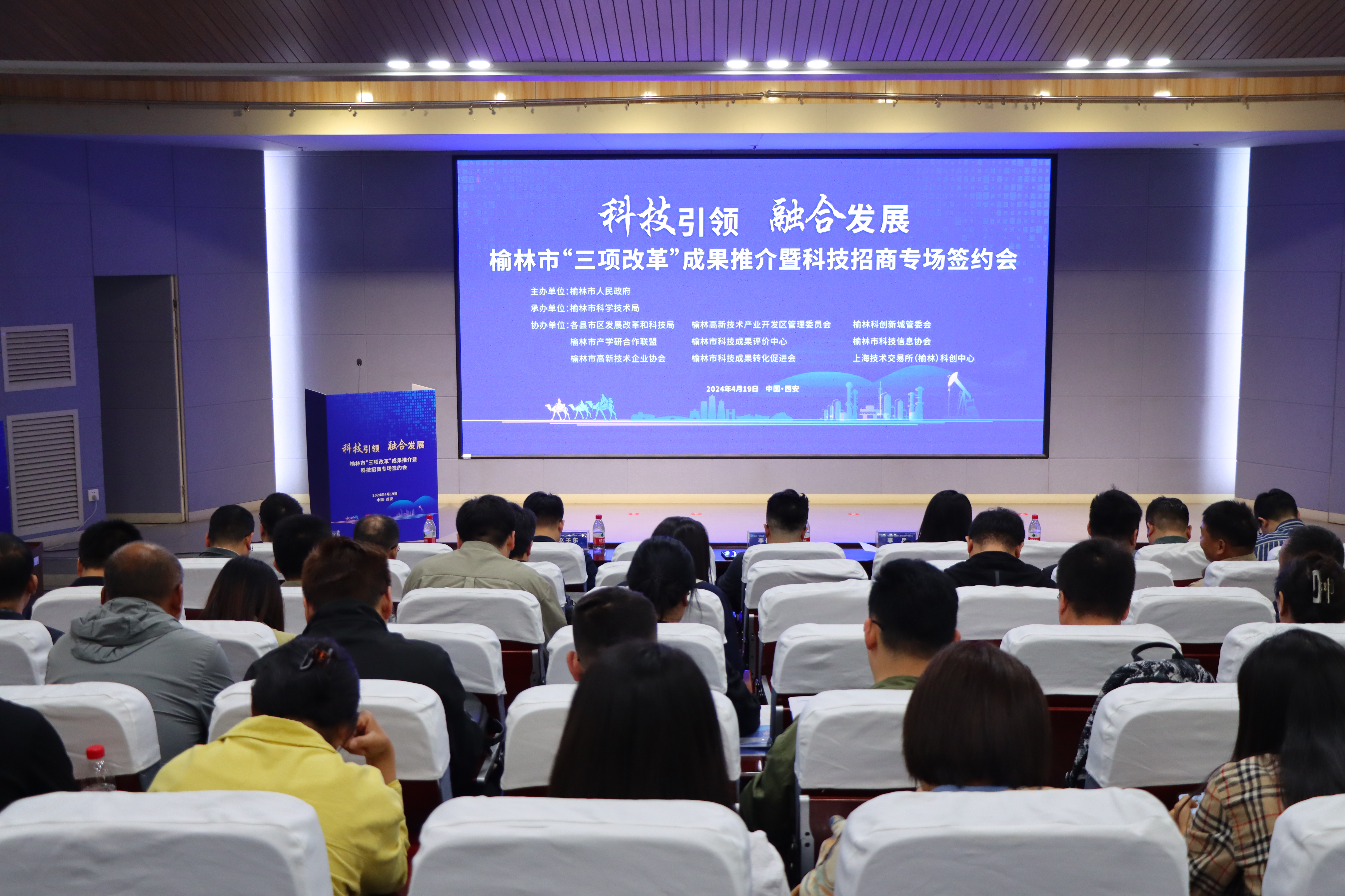 4月19日上午,榆林市“三项改革”高校成果推介暨科技招商专场签约会在我校桃园校区举行。