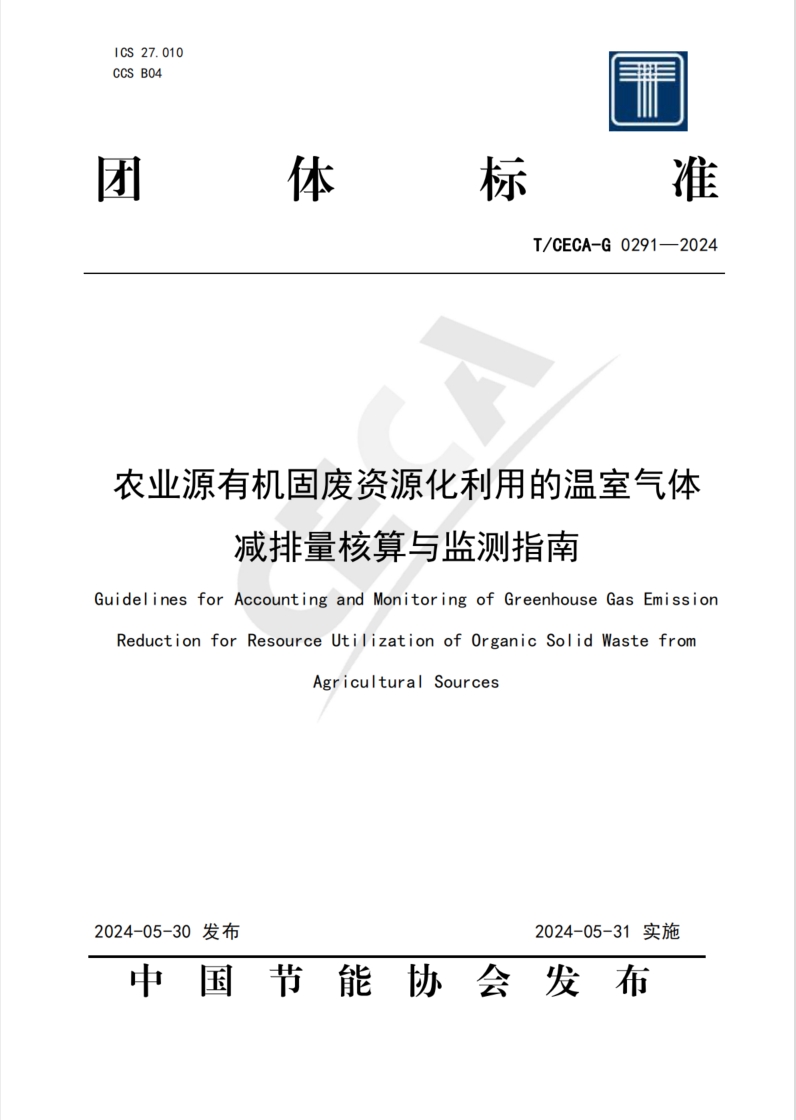 关于批准发布《农业源有机固废资源化利用的温室气体减排量核算与监测指南》等4项团体标准的公告链接: 中国节能协会 (cecaweb.org.cn)