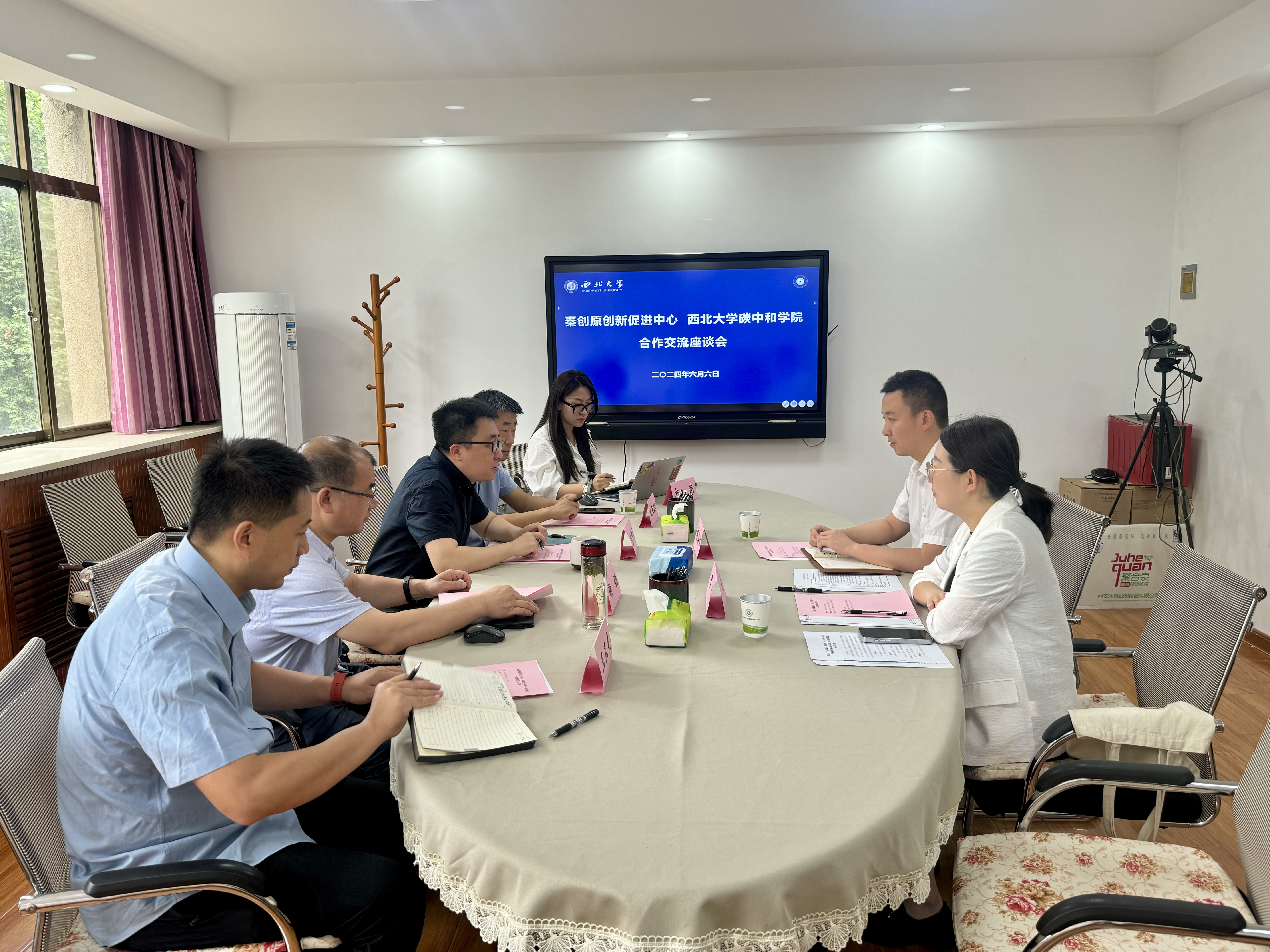 6月6日,秦创原创新促进中心对外合作部负责人杨滨旭一行来必赢贵宾会3003官网调研交流合作事宜。秦创原创新促进中心对外合作部干部罗萌,化工学院、碳中和学院双聘导师王玉琪教授以及必赢贵宾会3003官网相关负责人参加座谈。