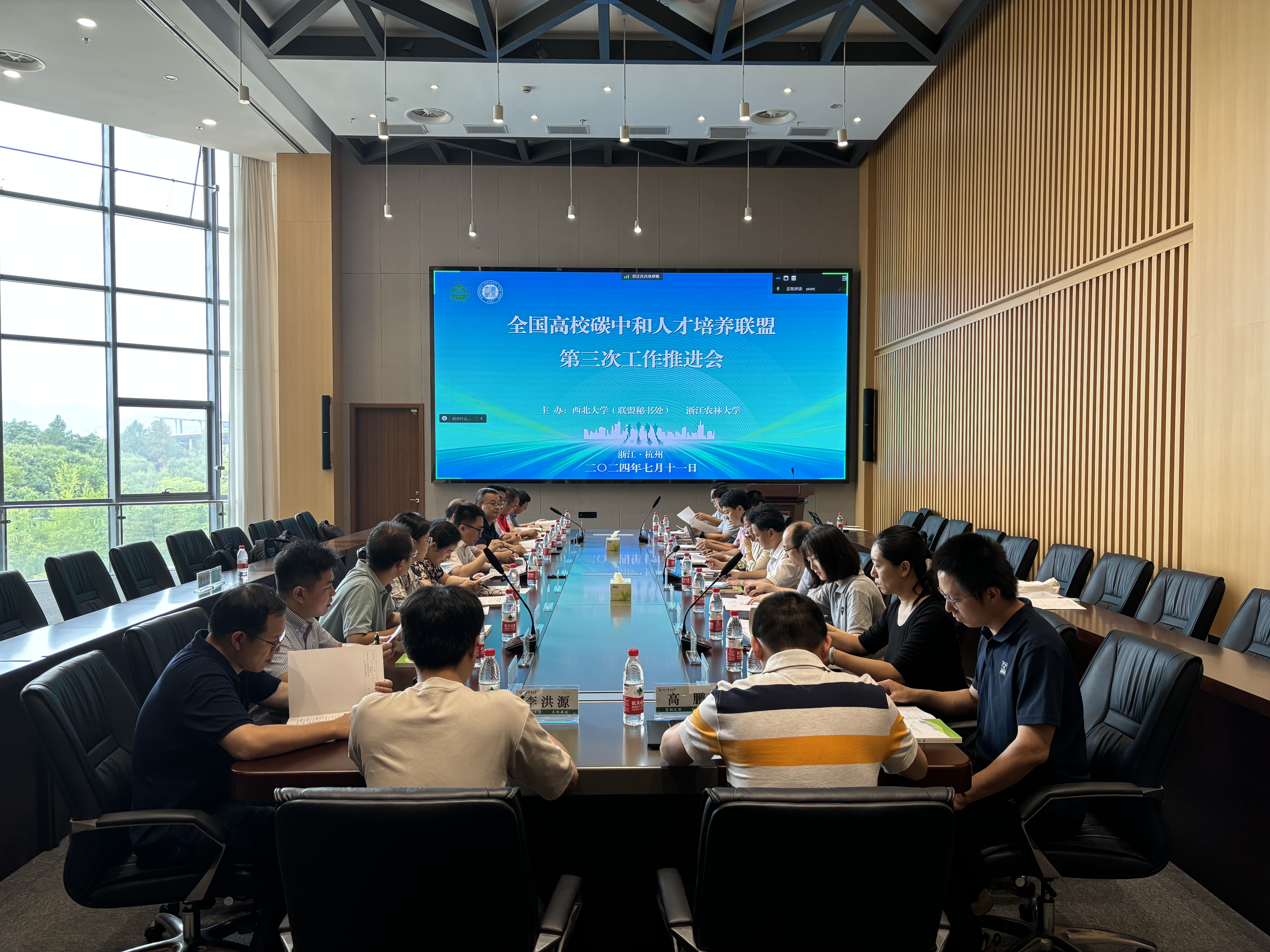 7月11日,我校与浙江农林大学联合在杭州举办全国高校碳中和人才培养联盟(以下简称“联盟”)第三次工作推进会,浙江农林大学党委委员、副校长沈月琴出席会议并致辞。上海交通大学、同济大学、重庆大学、中国石油大学(北京)、郑州大学(线上)、北京工业大学、福建师范大学、西安理工大学、陕西科技大学、福建农林大学、西安石油大学、临沂大学以及西北大学等联盟高校代表参加会议,联盟执行秘书长、西北大学碳中和学院负责人主持会议。