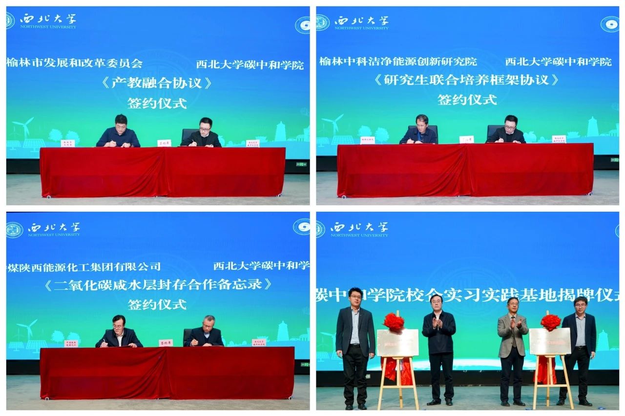 在活动现场,学院分别与榆林市发改委、榆林创新院、中煤陕西公司签署《产教融合合作协议》《研究生联合培养框架协议》《二氧化碳咸水层封存合作备忘录》,与中煤陕西公司、方圆认证陕西公司揭牌研究生实习实践基地。