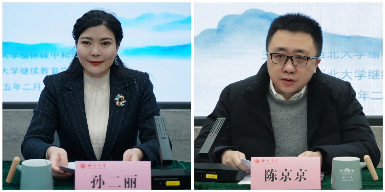 21日,西北大学继续教育学院院长、中华文化培训学院常务副院长孙二丽,碳中和学院负责人陈京京出席开班式。