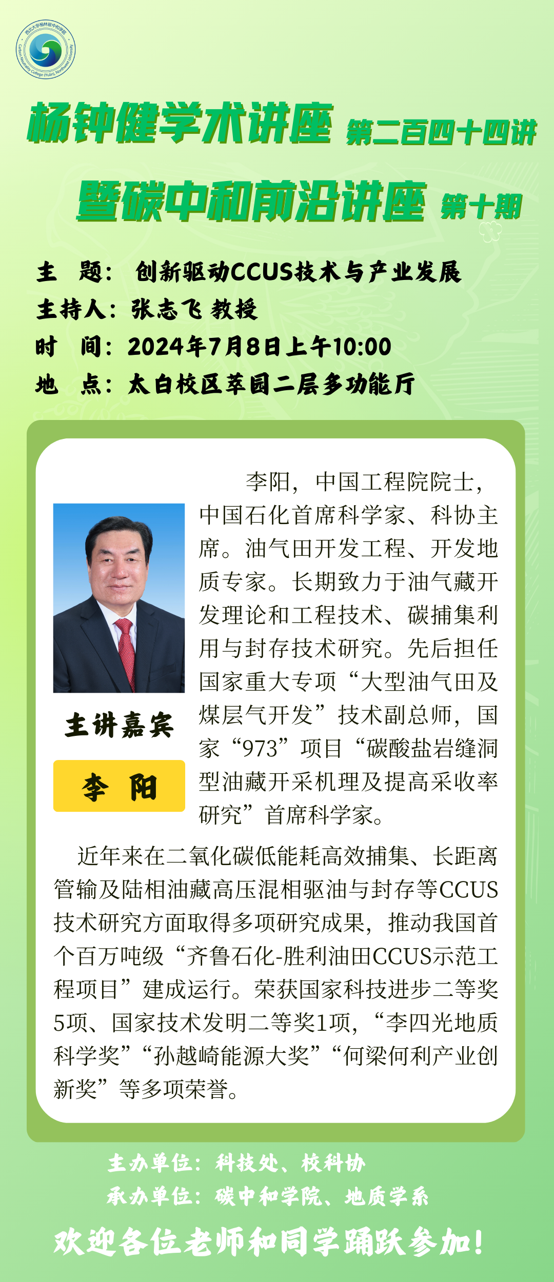 杨钟健学术讲座第二百四十四讲 暨碳中和前沿讲座第十期