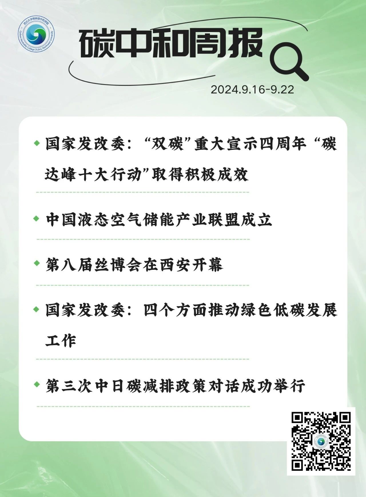 9月22日,在“双碳”提出四周年之际,国家发改委表示,四年来,与各地区、各部门扎实推进“碳达峰十大行动”,在能源绿色低碳转型、节能降碳增效行动、工业领域碳达峰行动、城乡建设碳达峰行动、交通运输绿色低碳、循环经济助力降碳、绿色低碳科技创新、碳汇能力巩固提升、绿色低碳全民行动、各地区梯次有序实施碳达峰行动等方面取得积极进展。