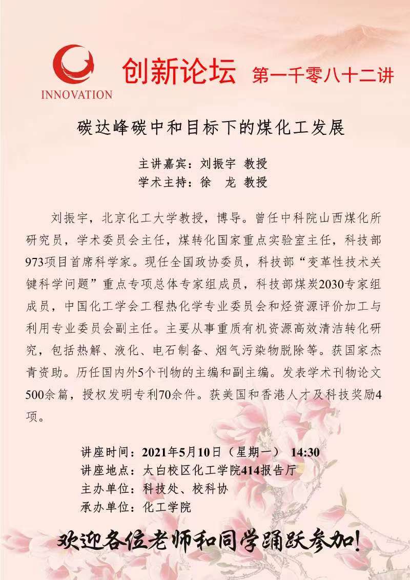 西北大学创新论坛第一千零八十二讲:碳达峰碳中和目标下的煤化工发展
