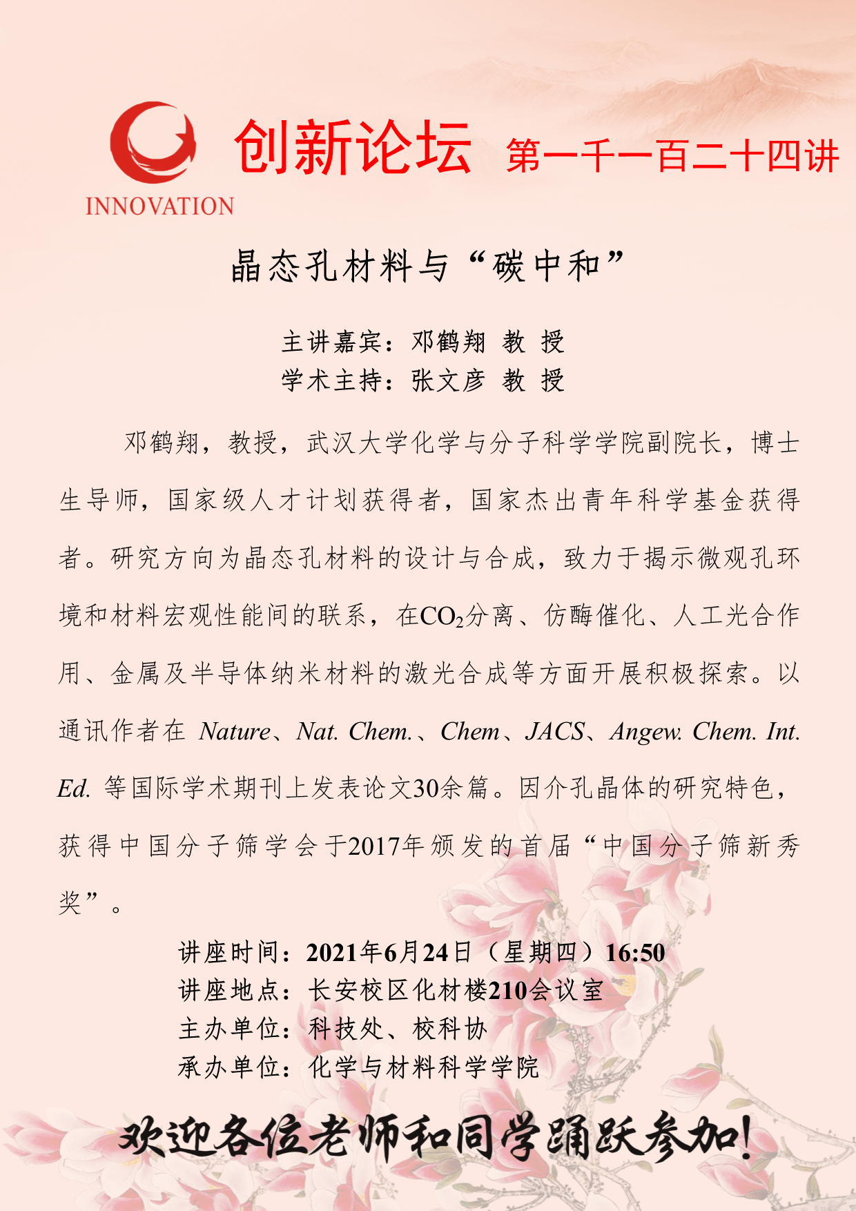 西北大学创新论坛第一千一百二十四讲:晶态孔材料与“碳中和”