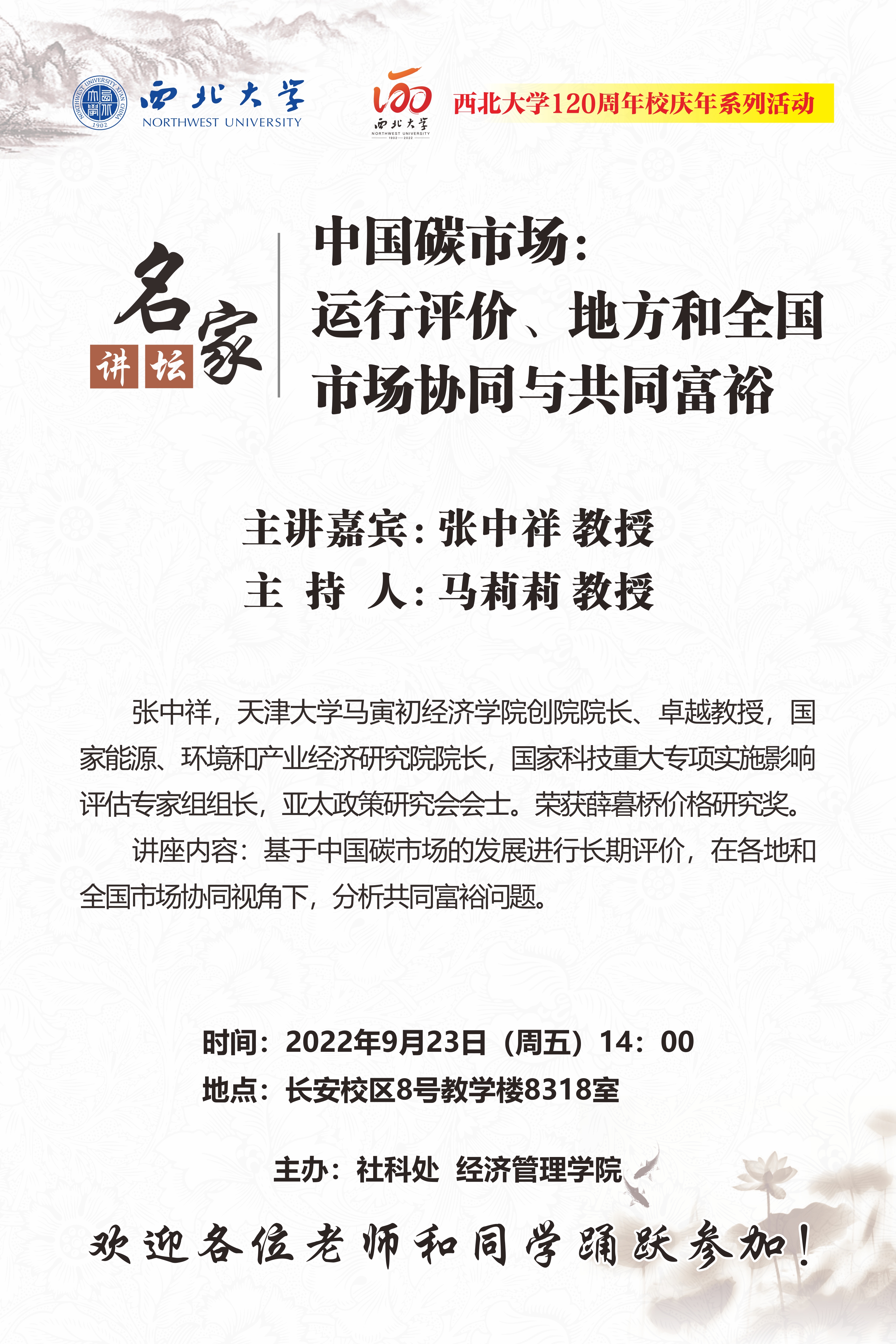 名家讲坛暨120周年校庆年系列活动:中国碳市场:运行评价、地方和全国市场协同与共同富裕