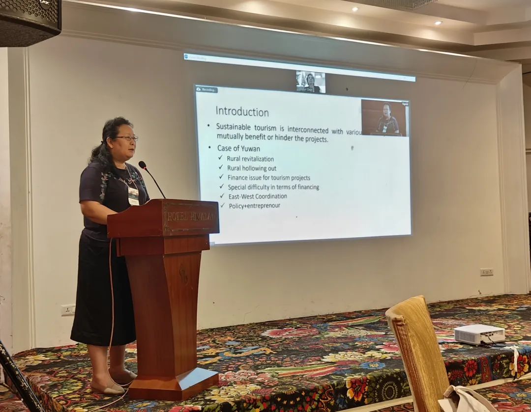 会议中,康蓉副教授受邀作了题为“政策和创新精神对可持续旅游的影响:来自中国陕西渔湾村的例子”的报告,以陕西渔湾村为案例,阐述了地方政策与创新精神如何协同作用,推动可持续旅游发展。报告展示了中国在绿色可持续旅游方面的成功实践案例,为其他国家和地区提供了宝贵的经验借鉴。